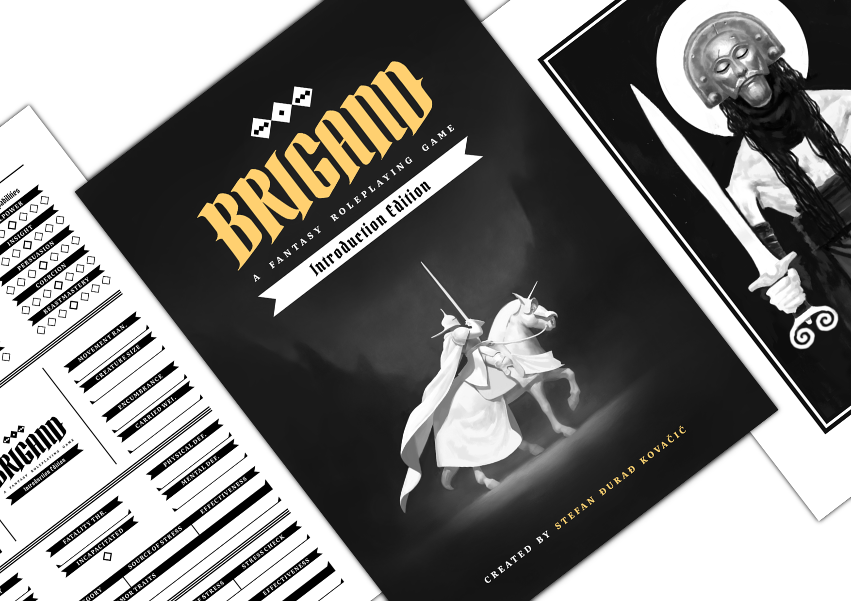 The early Introduction Edition for Brigand includes the game’s basic mechanics, a short linear scenario, and light worldbuilding information. All of the remaining necessary and optional mechanics will be provided in the full release.